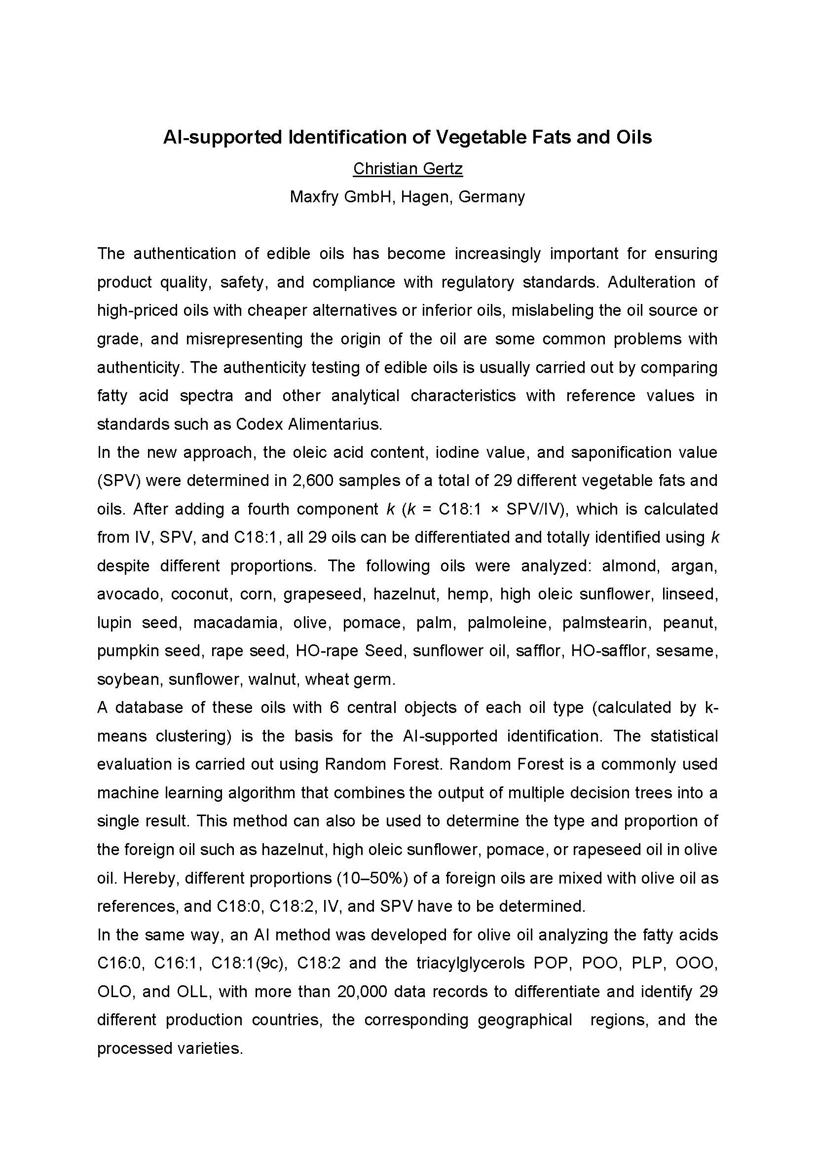 OLIV-007: AI-supported Identification of Vegetable Fats and Oils